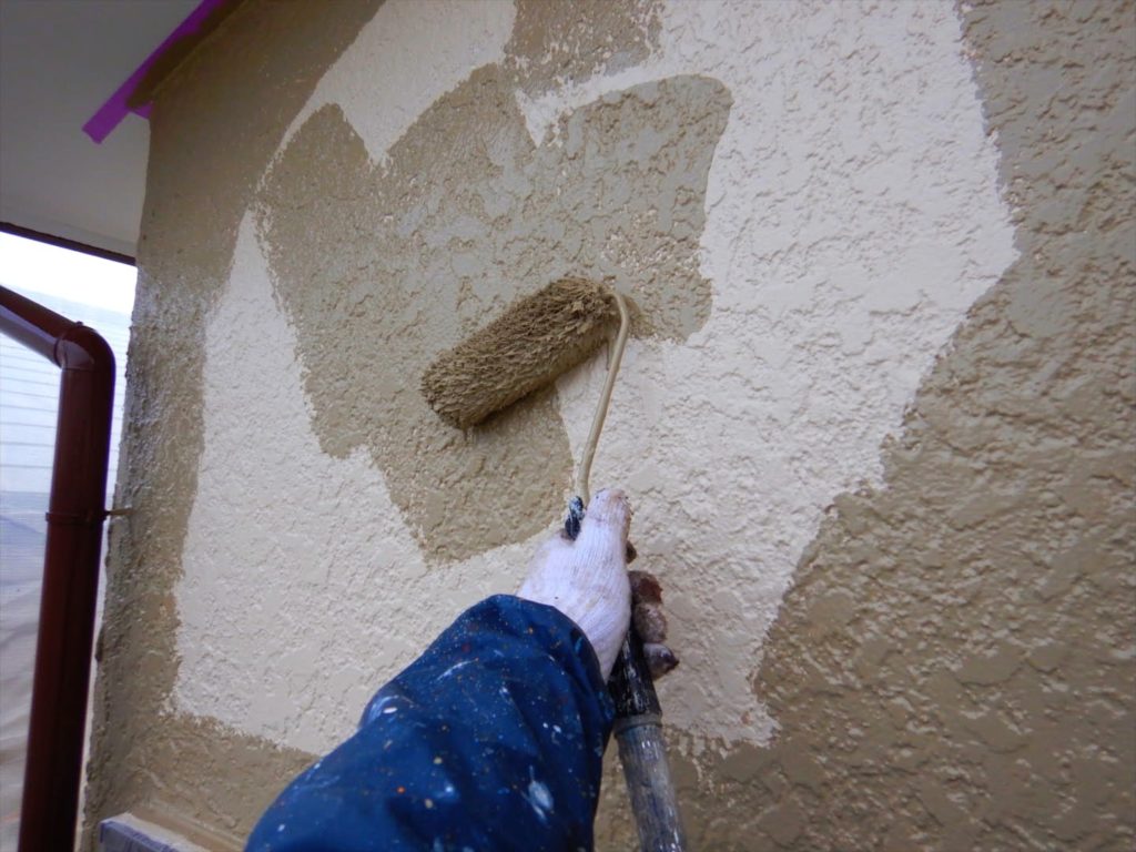 下地処理後、最初に塗料を塗る作業です。中塗り、上塗りが、しっかりと塗装面にくっつくようにする工程であり、経年劣化した外壁を蘇らせる効果があります。