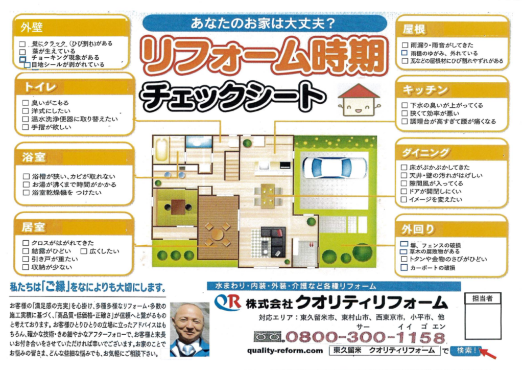 クオリティリフォームは東村山市に地域密着し、長年施工を続けてきました。おかげさまで商工会や市からも発注いただいております。しつこい営業はせず、「お客様に寄り添う」ことを第一に施工をさせていただいております。